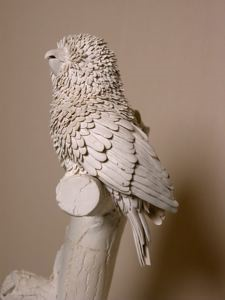Frank Fleming was born in Bear Creek, Alabama and currently lives in Birmingham. Raised on a tenant farm, Fleming was constantly outdoors and surrounded by animals. As a child, Fleming stuttered, and as a result of being teased by other children, he often turned to animals for company, more at home with animals than people. As an adult, Fleming recreates in unglazed white porcelain or cast bronze many of the animals that he came to know as a child. His sculptures are notable for their detail and realistic rendering, yet their lack of color adds a surreal quality. Many of Fleming's pieces suggest myths, folklore, or fables.