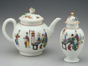 Although much English porcelain is original in form and decoration, English manufactories in general were strongly influenced by their European competitors, particularly the factories at Meissen and Sevres, and especially during the third quarter of the eighteenth century. English and Continental manufactories considered themselves not only in direct competition with one another, but with the Far Eastern porcelain that was being imported during the eighteenth century. As a result, both English and Continental ceramic houses adopted Asian forms and decorative motifs, sometimes as direct copies, but more often as compilations of designs by a European artisan who had no understanding of the real significance of the original themes. In Worcester's case, as with other English ceramic houses, Asian motifs were more than likely filtered via the Continent rather than coming directly from Japan or China. As a result, the designs, called Chinoiseries, manifest the style without the substance of Oriental design, but also display an exotic charm.