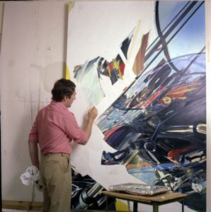 Parrish made "Royal Chevy" by projecting a color slide onto a canvas and lightly sketching the composition in pencil. Using this sketch as a guide, he elaborated upon the composition, applying oil paints with a fine tipped sable-hair brush.